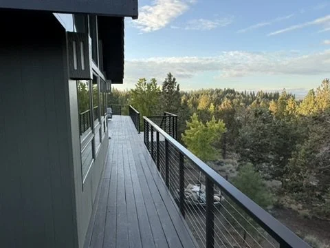 We offer deck building, deck renovation, adding structural support to existing and we have experience in specialized railings such as adding cable railing to this deck to improve visibility to their mountain views!